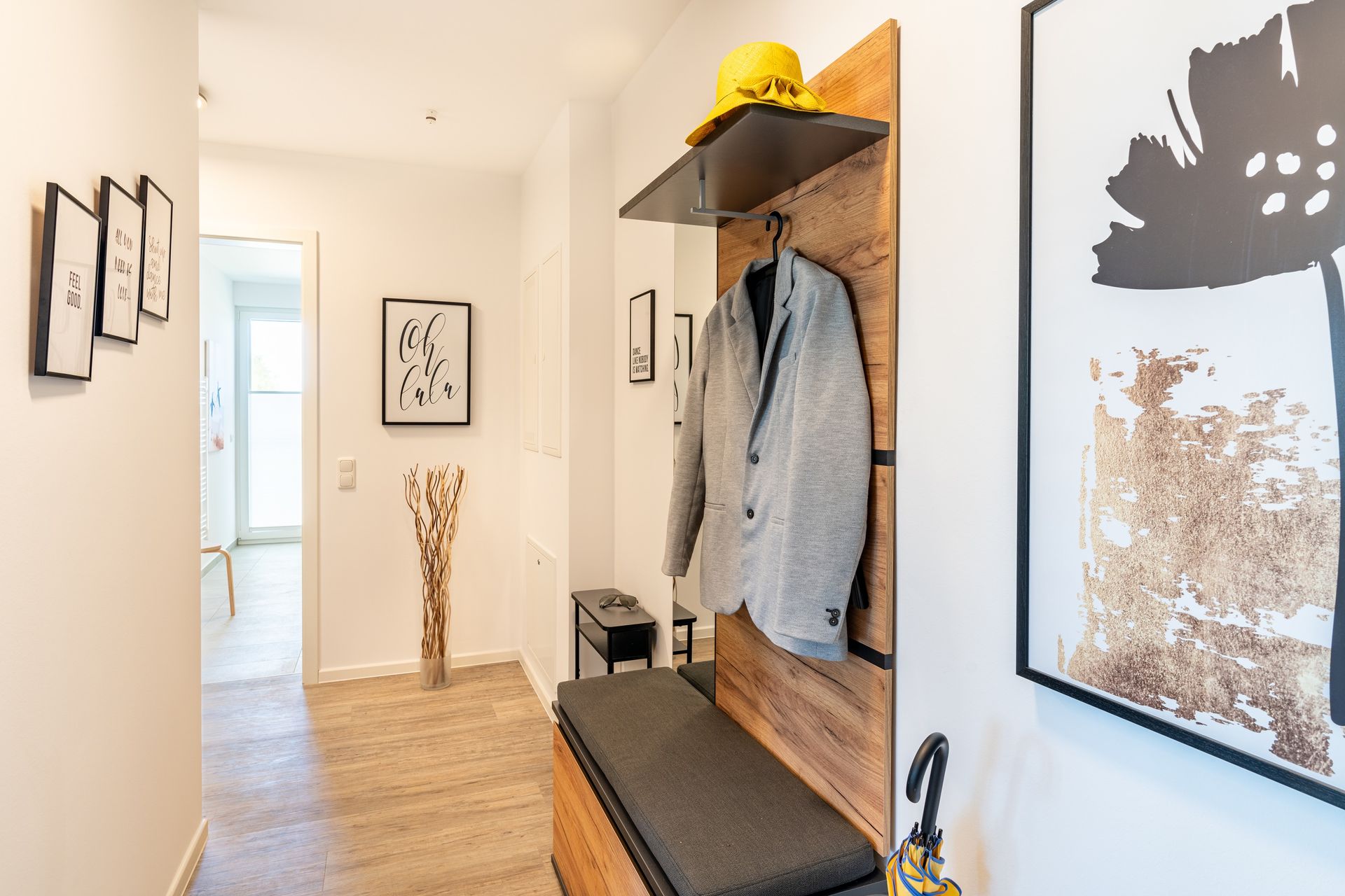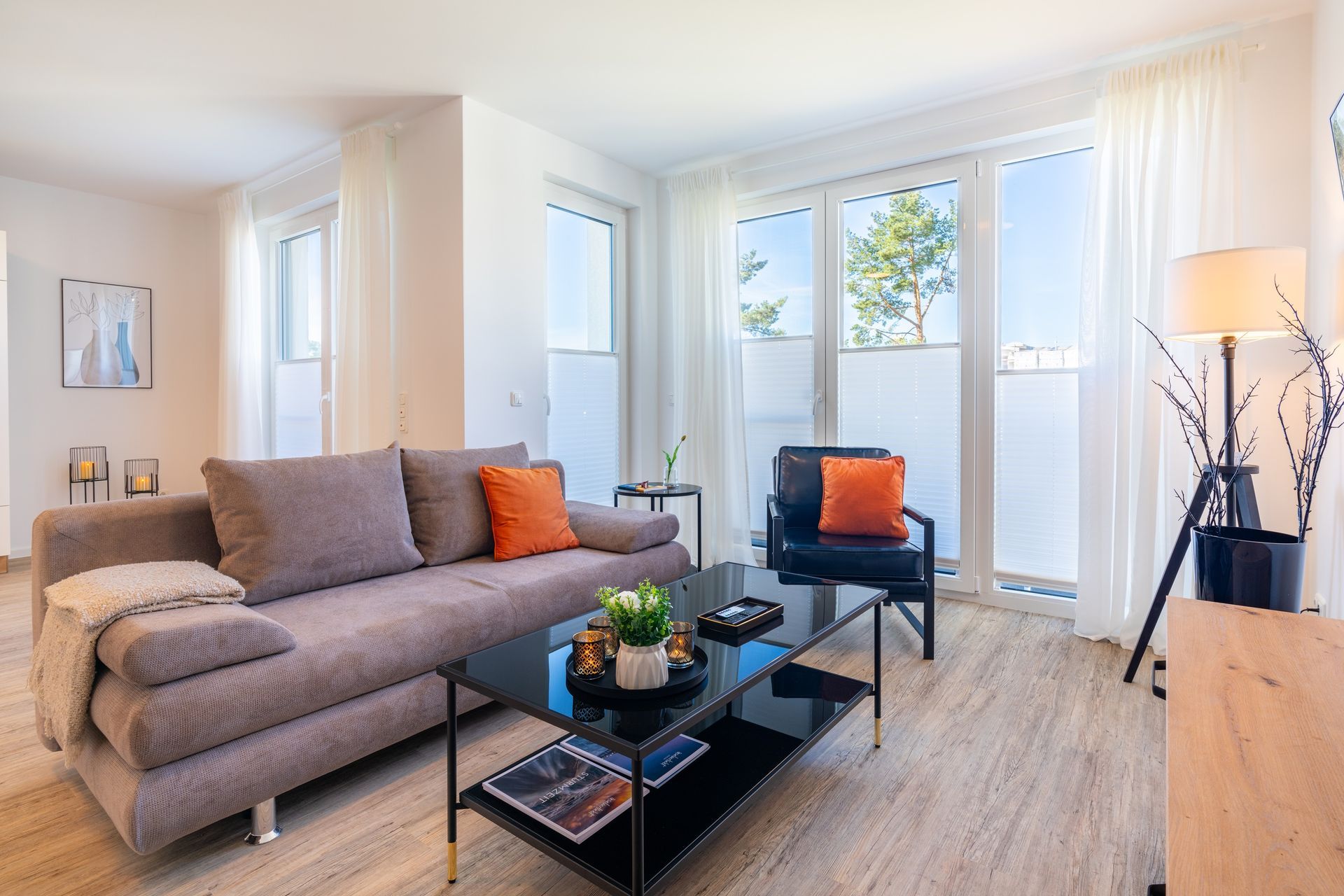 Auf einer Wohnfläche von 70 m² finden drei Erwachsene und ein Kleinkind bis zwei Jahre (im Babybett) in dieser modern eingerichteten Ferienwohnung ausreichend Platz für einen entspannten Urlaub am Stettiner Haff auf Usedom.