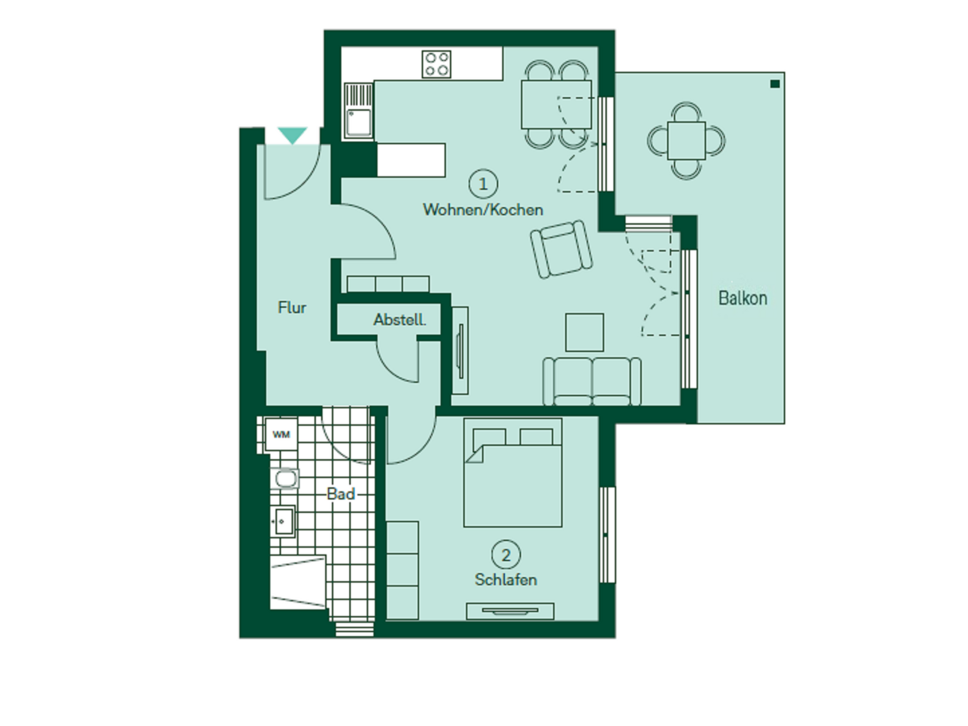 Der Südwest-Balkon mit Sitzgelegenheiten ist ein angenehmer Ort, um sich zu entspannen, frische Luft zu schnappen und die Sonne bei einem Sommergetränk zu genießen.