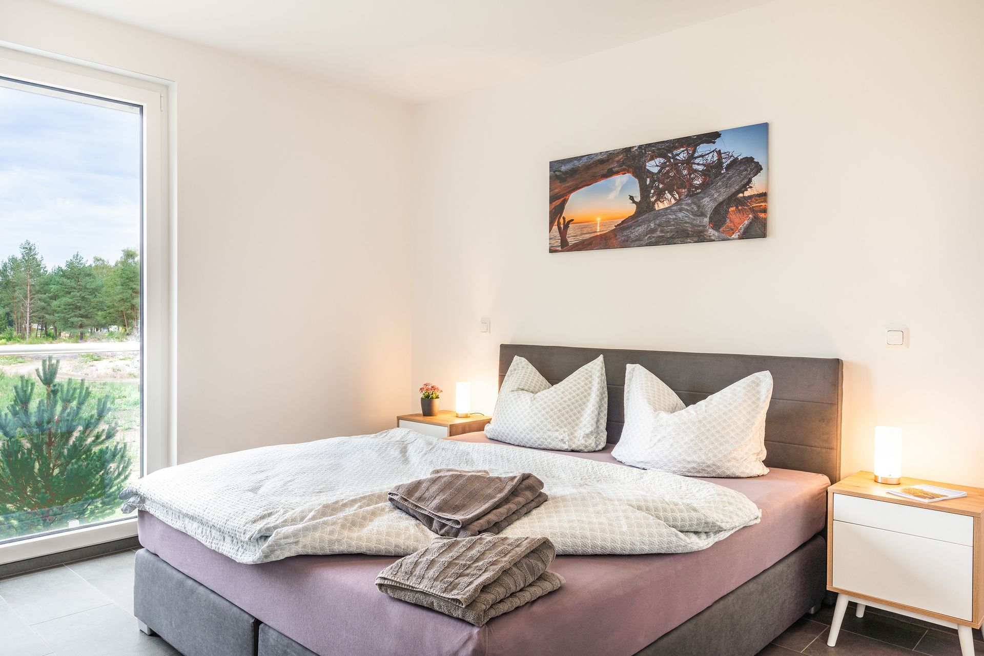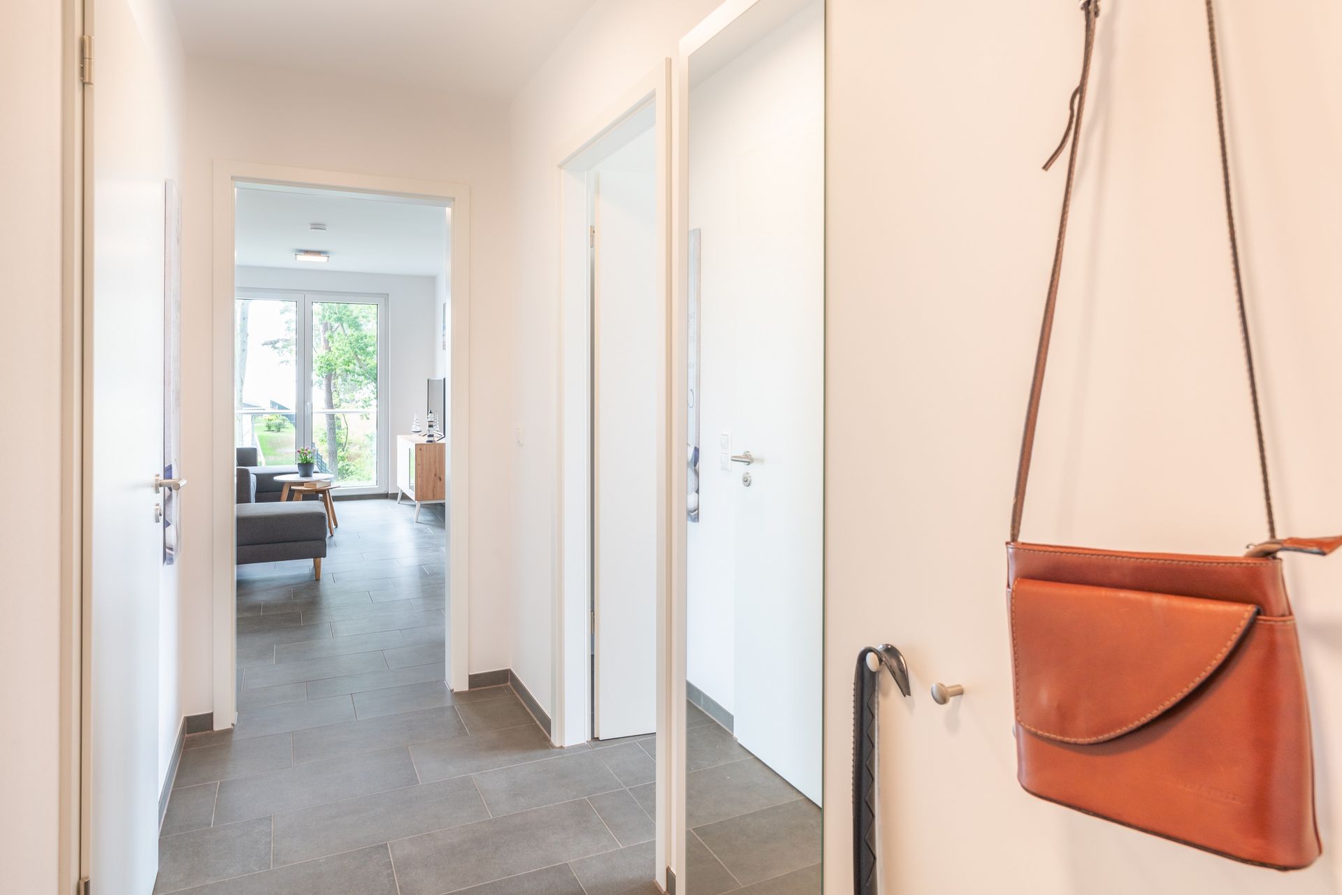 Auf einer Wohnfläche von 61 m² finden drei Erwachsene und ein Kleinkind bis zwei Jahre (im Babybett) in dieser modern eingerichteten Ferienwohnung ausreichend Platz für einen entspannten Urlaub am Stettiner Haff auf Usedom.