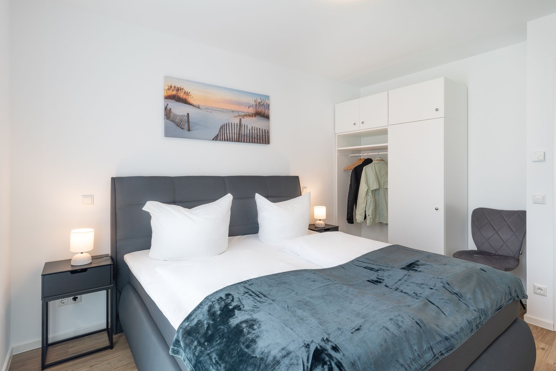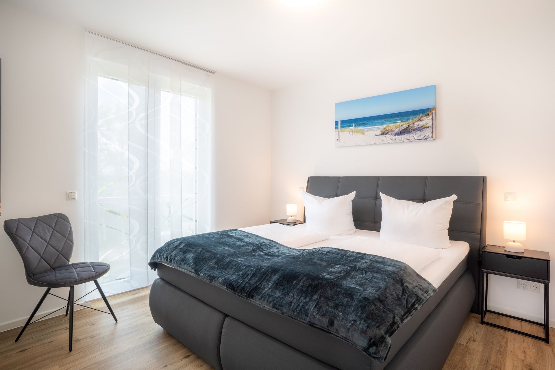 Erholsamer Schlaf in den beiden Schlafzimmern mit je einem Boxspringbett (180 x 200 cm) ist garantiert. Beide Schlafzimmer sind mit einem Smart-TV-Gerät ausgestattet.