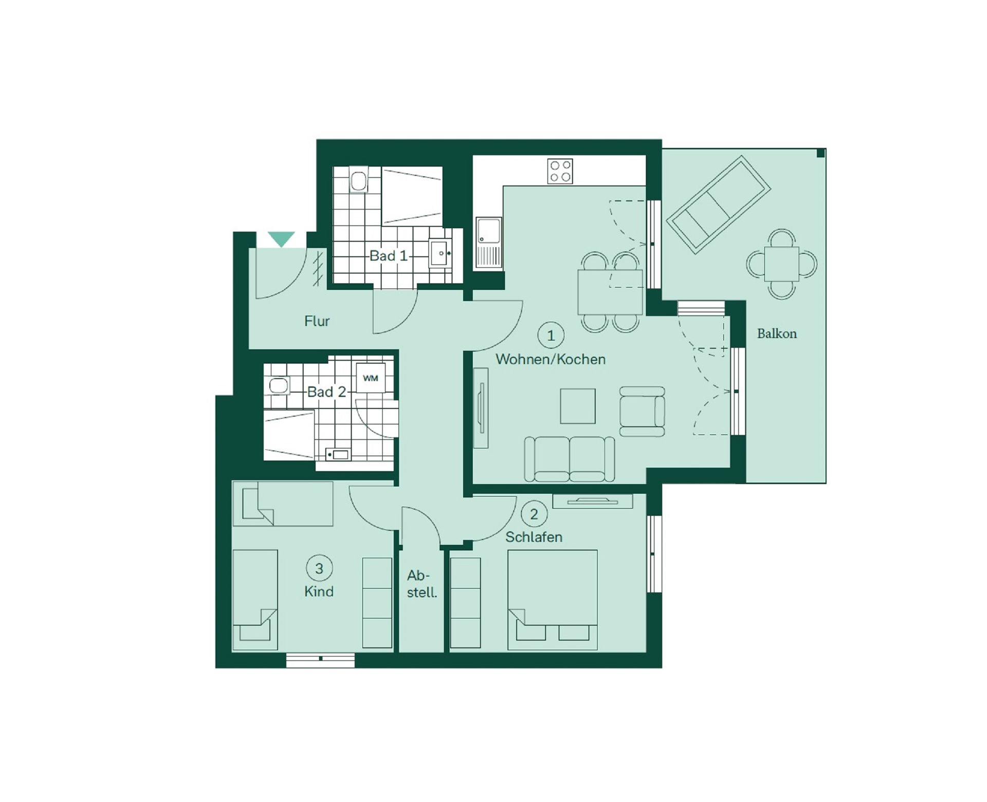 Der Südwest-Balkon ist ein angenehmer Ort, um sich zu entspannen, frische Luft zu schnappen und die Sonne bei einem Sommergetränk zu genießen.