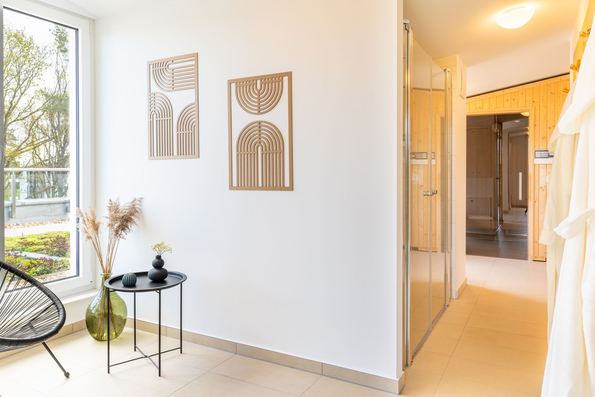 Weit ab von der Hektik und den Besuchermassen öffentlicher Wellnessangebote, finden Sie im Dachgeschoss des Hauses auf 190 m² die Ruhe, die Sie sich verdient haben. Entspannen Sie im hauseigenen, kostenfreien Wellnessbereich mit drei Saunen. Genießen Sie die klare Ostseeluft auf der großen angrenzenden Dachterrasse.