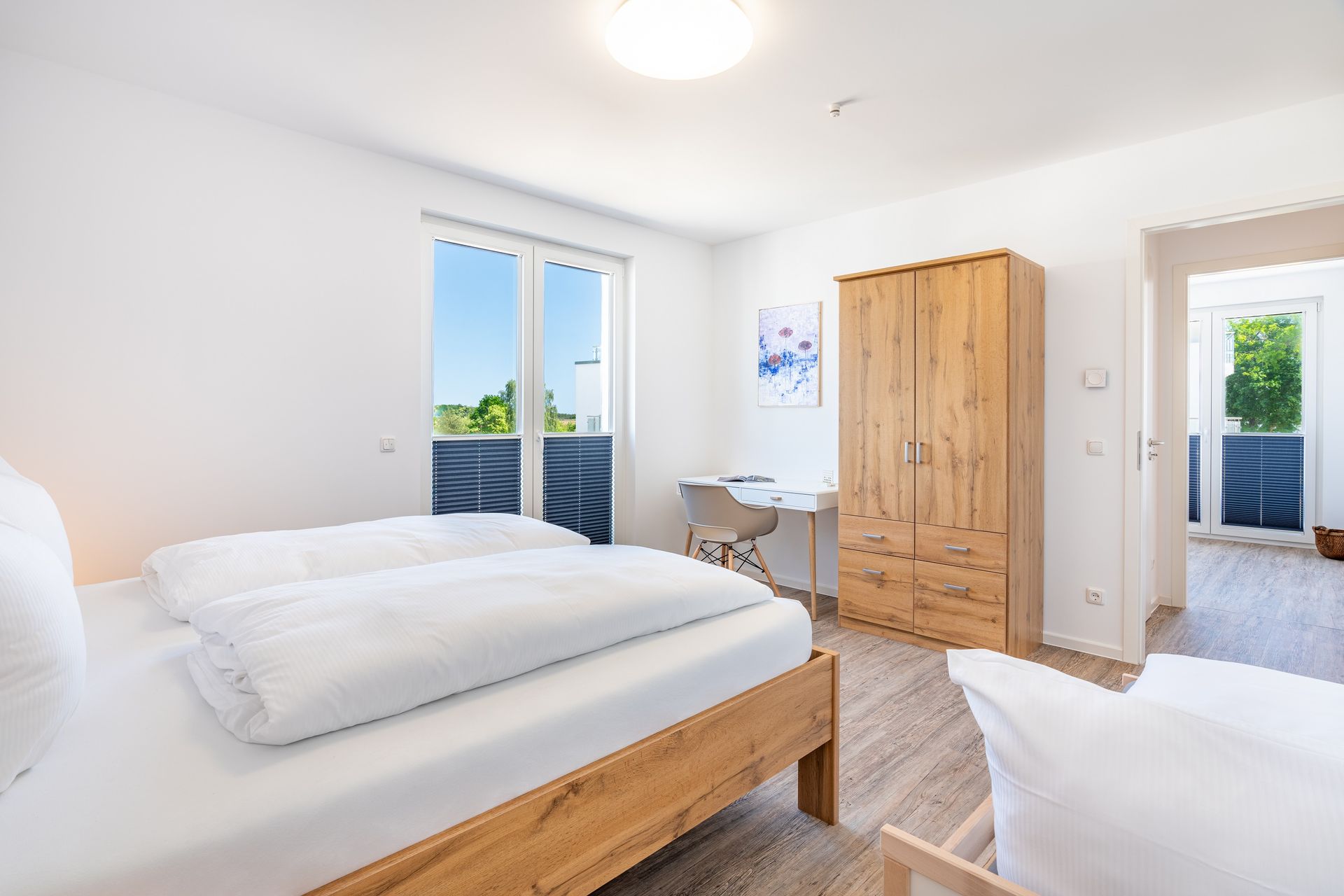 Auf einer Wohnfläche von 88 m² finden fünf Erwachsene und ein Kind bis 8 Jahre in dieser modern eingerichteten Ferienwohnung ausreichend Platz für einen entspannten Urlaub am Stettiner Haff auf Usedom.