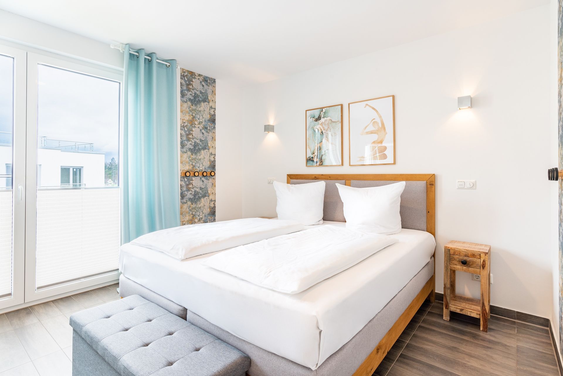 Erholsamer Schlaf ist im hochwertigen Boxspringebtt (180 x 200 cm) garantiert. Im Schlafzimmer befindet sich ein weiteres TV-Gerät. Das Schlafsofa im Wohnzimmer kann im Handumdrehen zu einem Bett umfunktioniert werden (Liegefläche: 140 x 200 cm).