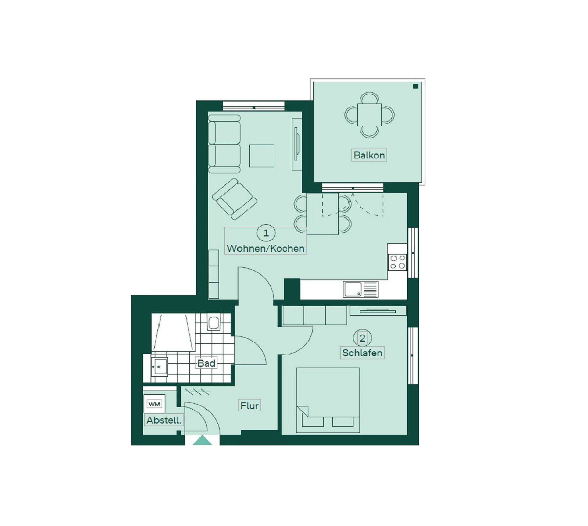 Der Südwest-Balkon mit Sitzgelegenheiten ist ein angenehmer Ort, um sich zu entspannen, frische Luft zu schnappen und die Sonne bei einem Sommergetränk zu genießen.