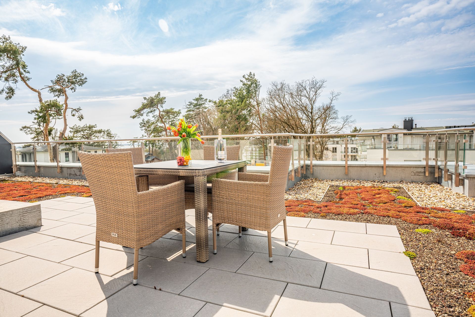 Weit ab von der Hektik und den Besuchermassen öffentlicher Wellnessangebote, finden Sie im Dachgeschoss des Hauses auf 190 m² die Ruhe, die Sie sich verdient haben. Entspannen Sie im hauseigenen, kostenfreien Wellnessbereich mit zwei Saunen und gemütlichem Ruheraum. Genießen Sie die klare Ostseeluft auf der großen angrenzenden Dachterrasse.