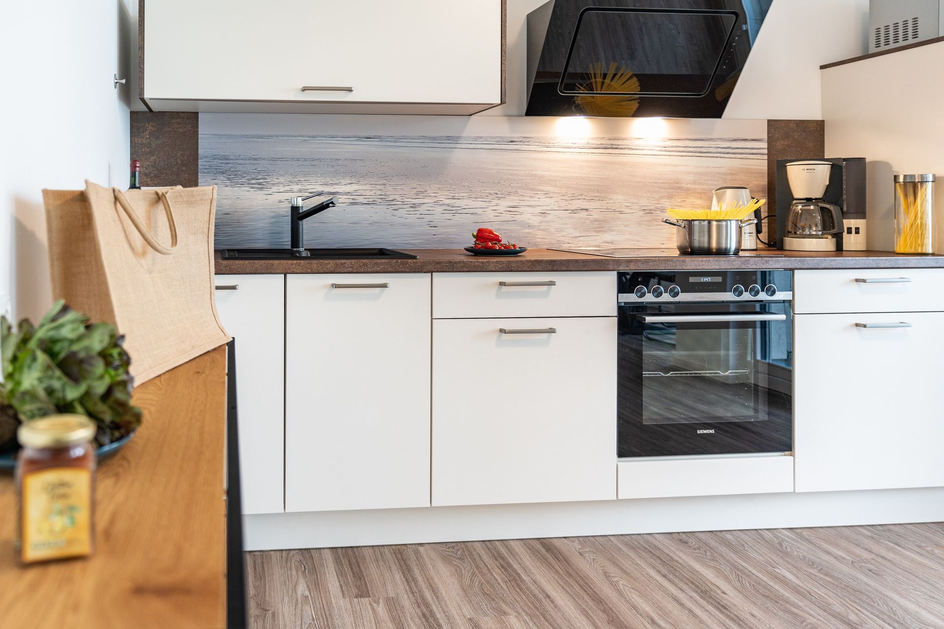 Die Küchenzeile verfügt über hochwertige Geräte wie Herd, Backofen, Mikrowelle, Kühl- und Gefrierschrank, Kaffeemaschine, Tassimo-Kapselmaschine sowie Spülmaschine. Ausreichend Geschirr, Besteck sowie Töpfe und Pfannen befinden sich in den Schränken. Am großen Esstisch finden Sie vor einem erholsamen Urlaubstag zu einem gemeinsamen Frühstück zusammen.