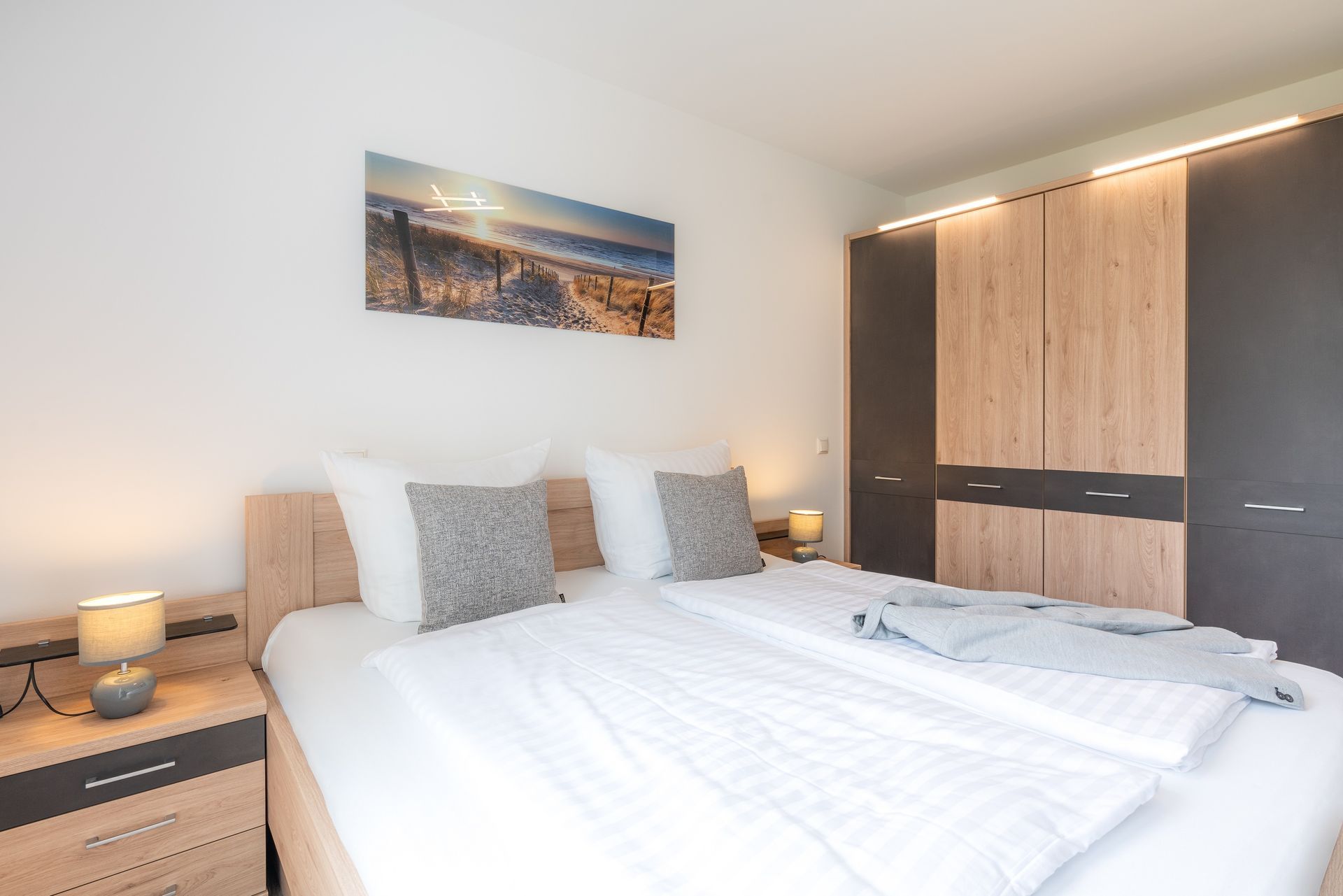 Erholsamer Schlaf in den beiden Schlafzimmern mit je einem Doppelbett (180 x 200 cm) ist garantiert. Ein Schlafzimmer ist mit einem weiteren TV-Gerät ausgestattet. Das Schlafsofa im Wohnzimmer kann im Handumdrehen zu einem Bett umfunktioniert werden (Liegefläche: 120 x 200 cm).