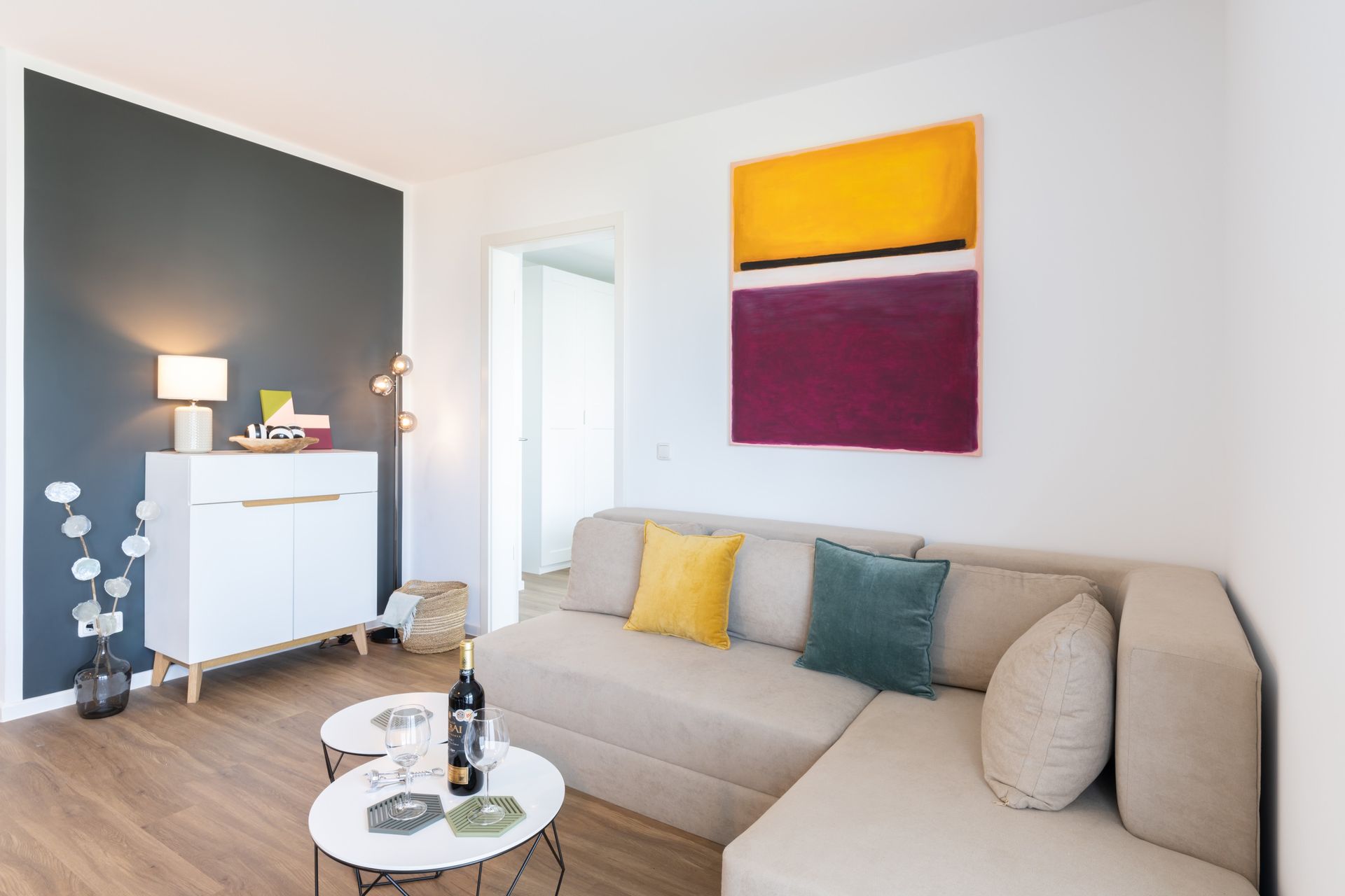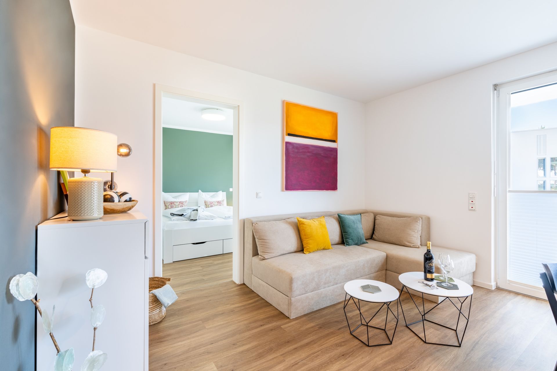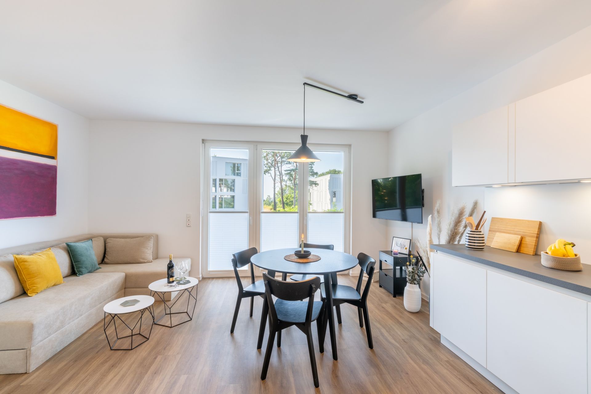 Auf einer Wohnfläche von 63 m² finden drei Erwachsene und ein Kleinkind bis zwei Jahre (im Babybett) in dieser modern eingerichteten Ferienwohnung ausreichend Platz für einen entspannten Urlaub am Stettiner Haff auf Usedom.