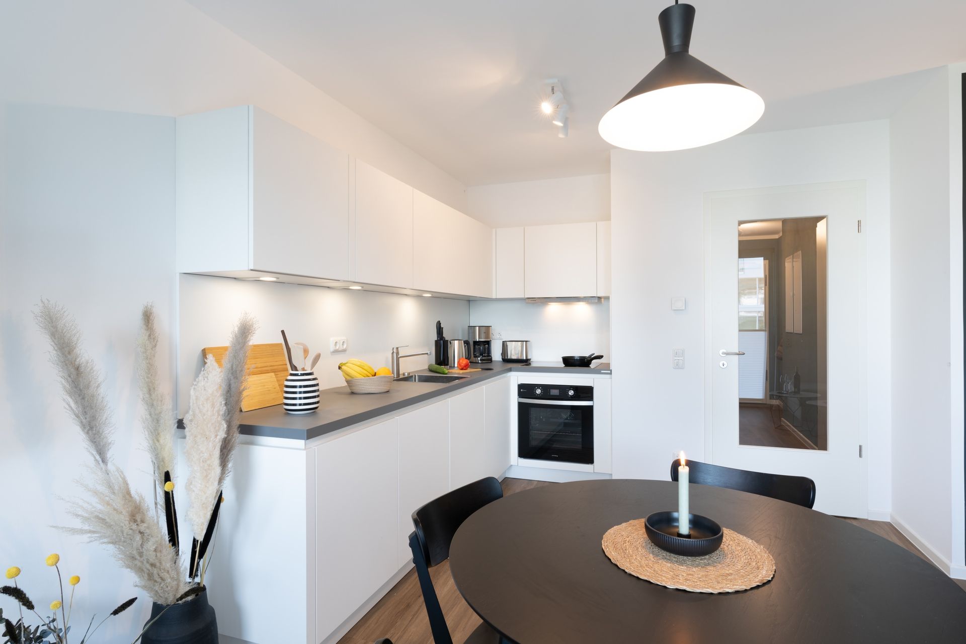 Die Küchenzeile verfügt über hochwertige Geräte wie Herd, Kaffeefiltermaschine, Nespresso-Maschine, Handmixer, Milchaufschäumer, Backofen, Kühlschrank mit Gefrierfach sowie Spülmaschine. Ausreichend Geschirr, Besteck sowie Töpfe und Pfannen befinden sich in den Schränken. Am Esstisch finden Sie vor einem erholsamen Urlaubstag zu einem gemeinsamen Frühstück zusammen.