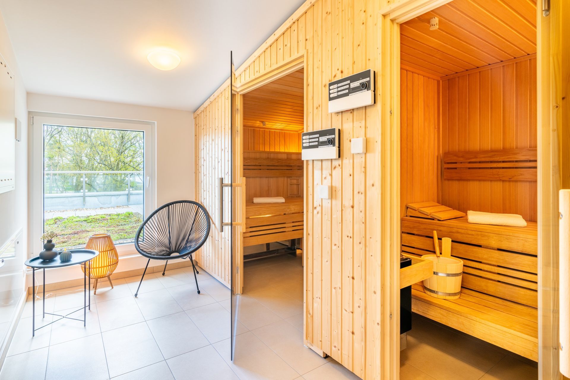 Weit ab von der Hektik und den Besuchermassen öffentlicher Wellnessangebote, finden Sie im Dachgeschoss des Hauses auf 190 m² die Ruhe, die Sie sich verdient haben. Entspannen Sie im hauseigenen, kostenfreien Wellnessbereich mit drei Saunen. Genießen Sie die klare Ostseeluft auf der großen angrenzenden Dachterrasse.