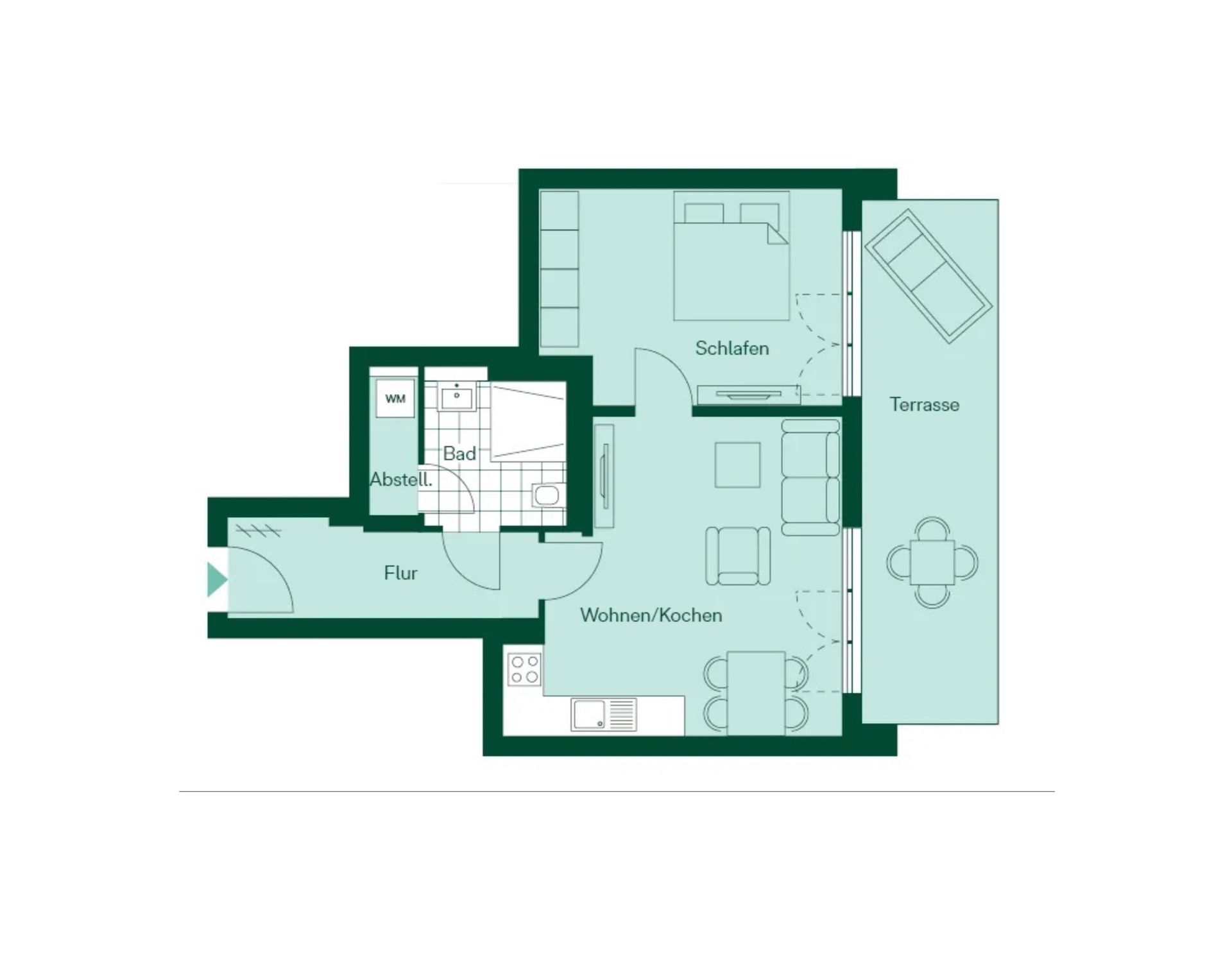 Der offen gestaltete Wohnbereich ist mit einem Ecksofa, Smart-TV und Internetradio ausgestattet. Sie haben vom Wohn- und Schlafzimmer aus Zugang zur Südterrasse. Genießen Sie Ihre Speisen auf der möblierten Terrasse mit traumhaften Ausblicken in die Gartenanlage. Zwei zusätzliche Sonnenliegen und ein Elektrogrill runden den Komfort in den Sommermonaten ab.
