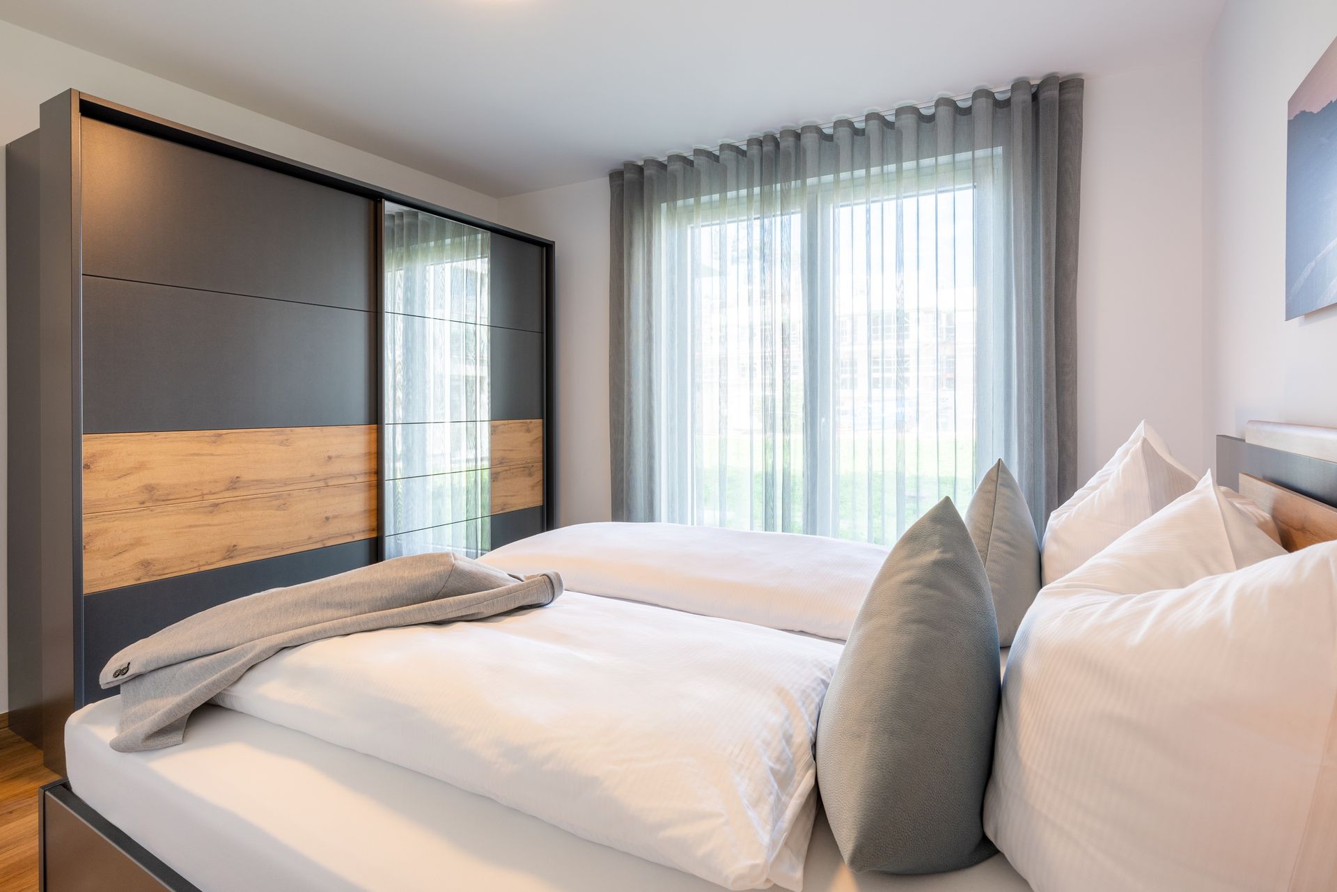 - Wohn- und Schlafräume können mittels Außenjalousien komplett abgedunkelt werden