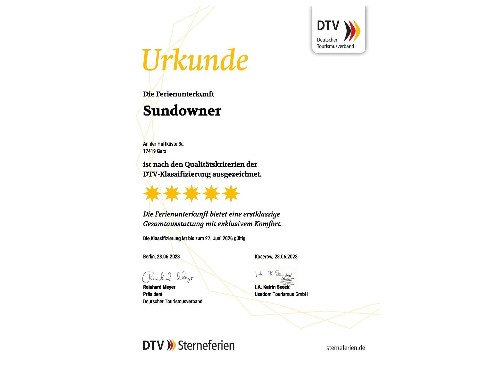 - 5 Sterne DTV-Klassifizierung