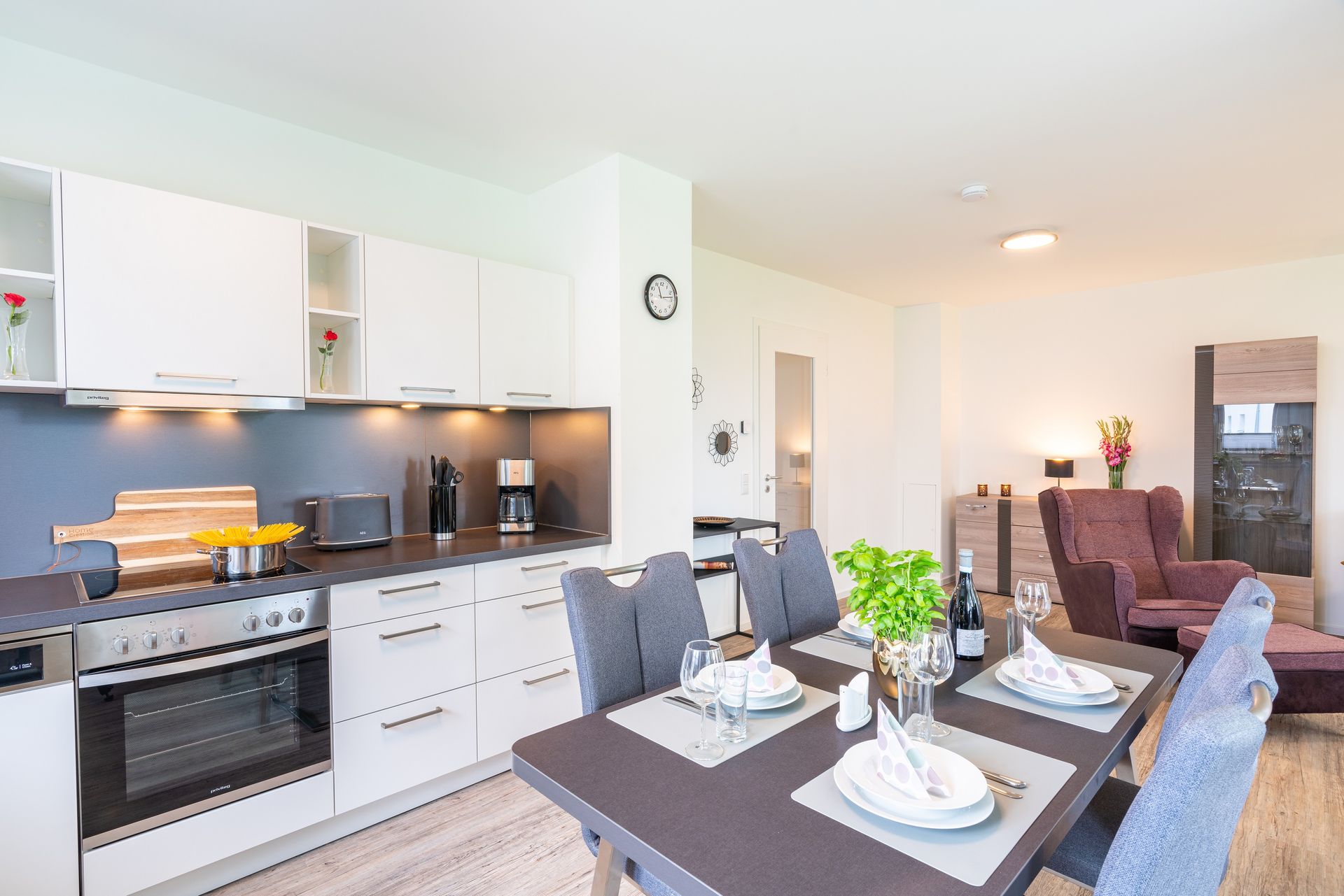Auf einer Wohnfläche von 92 m² finden fünf Erwachsene und ein Kind bis 14 Jahre in dieser modern eingerichteten Ferienwohnung ausreichend Platz für einen entspannten Urlaub am Stettiner Haff auf Usedom.