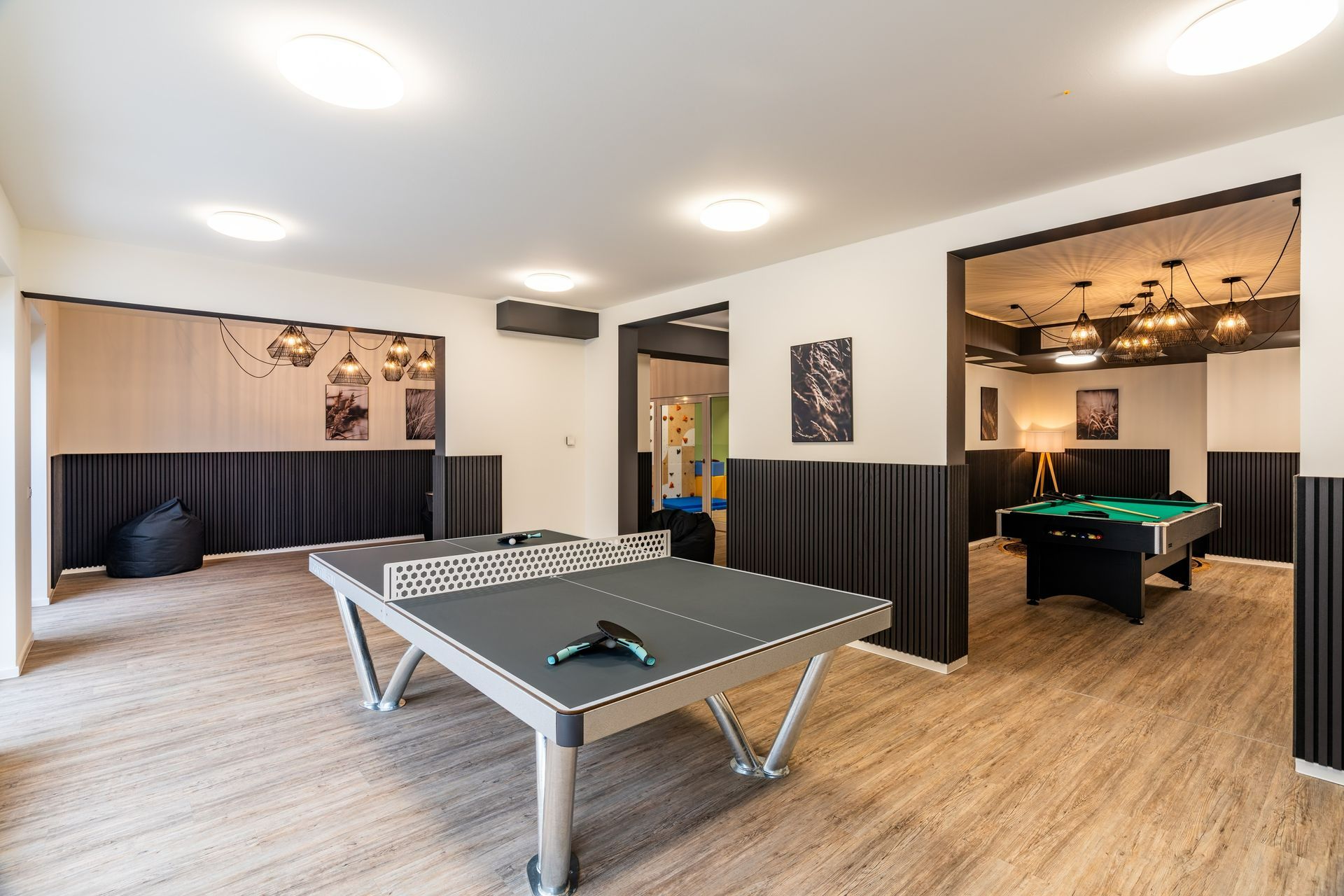 Dort erwarten sie Tischtennisbereiche, Kickertische, Airhockey sowie Spieleecken, die selbst an "Schlechtwettertagen" keine Langeweile aufkommen lassen.