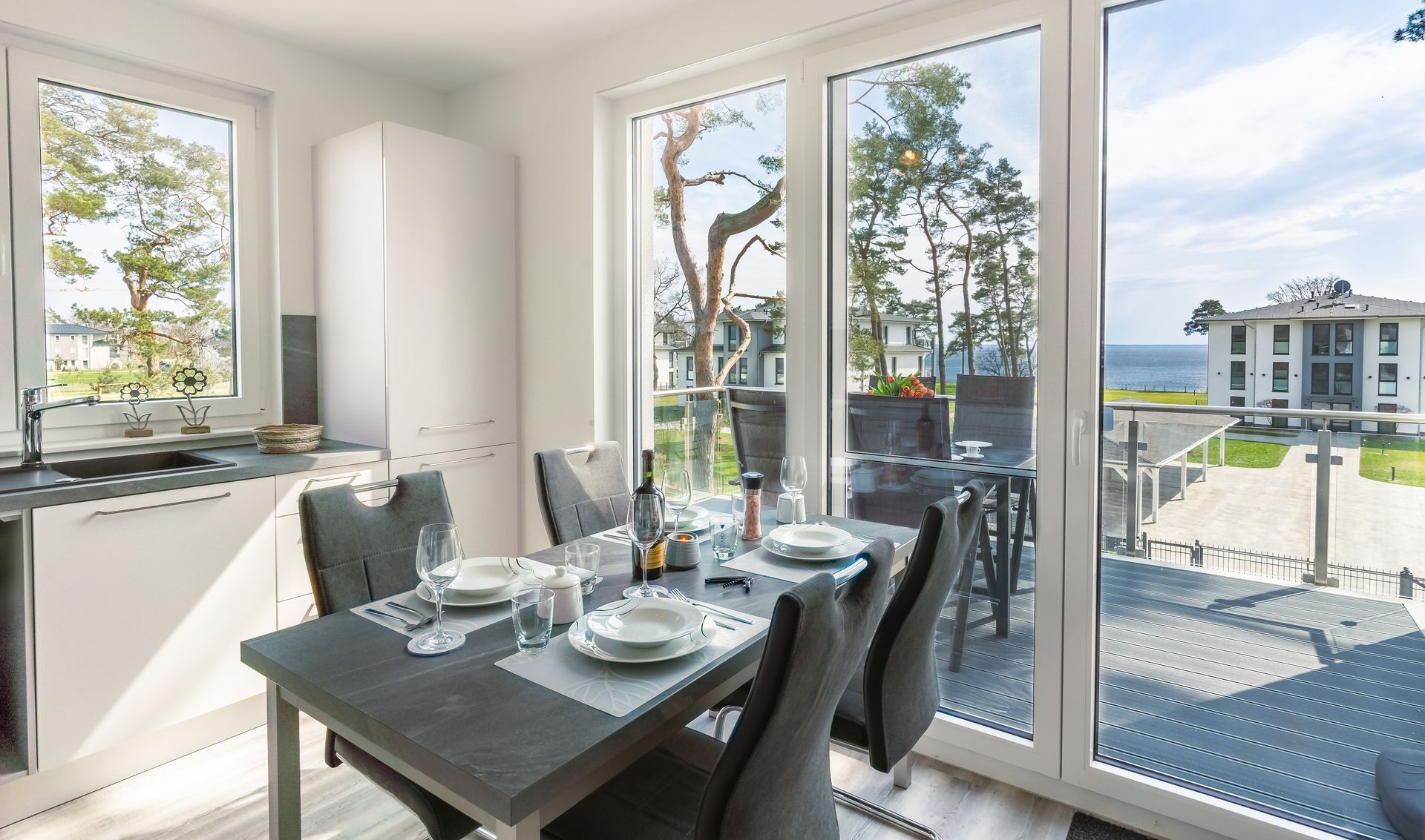 Die Haffresidenz ist eine junge im Jahre 2020 fertiggestellte Ferienanlage, mit modern eingerichteten Wohnungen und toller Aussicht, sowie direkter Nähe zum