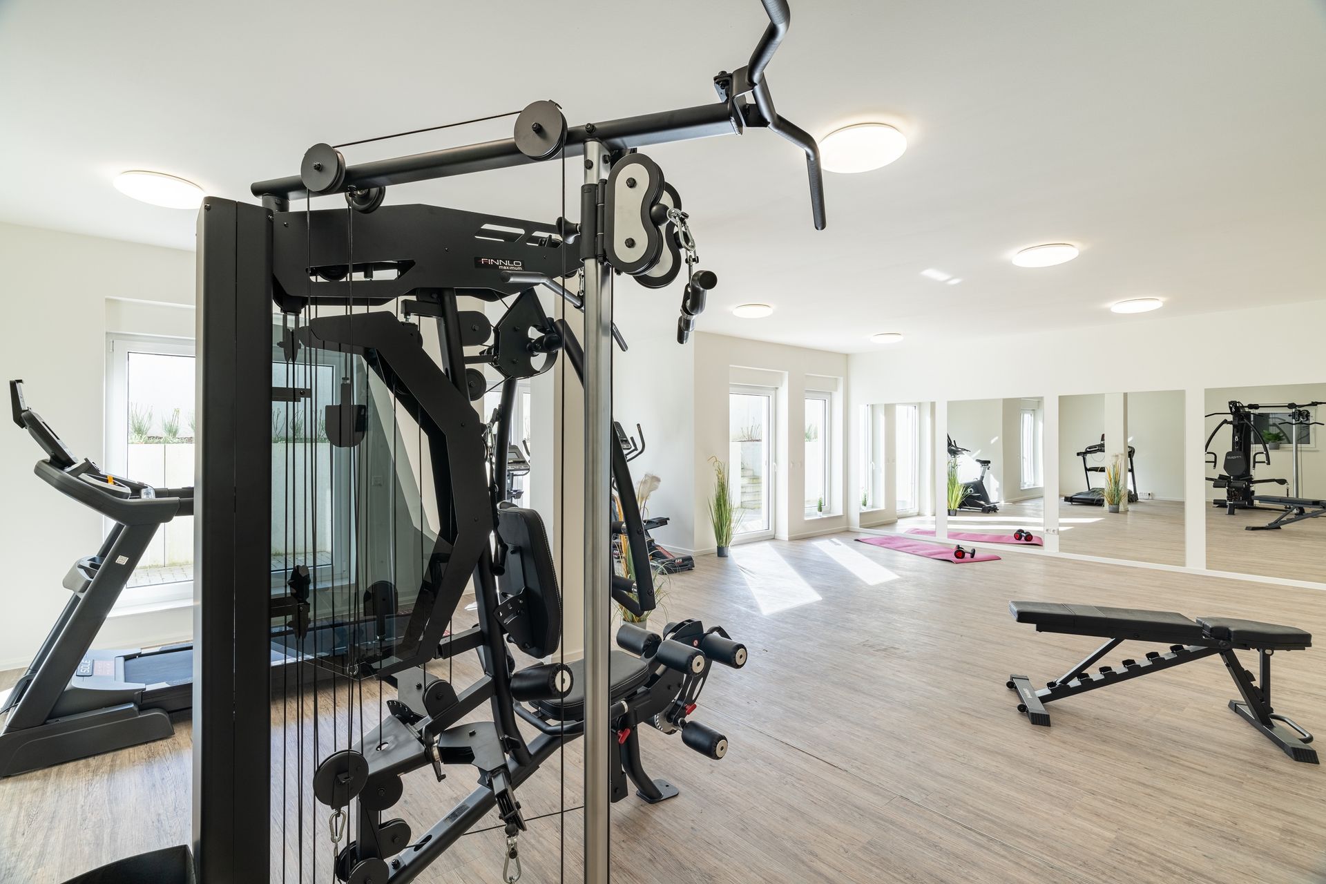 Die aktiven Urlauberinnen und Urlauber kommen in dem großzügigen, lichtdurchfluteten Fitnessraum auf ihre Kosten, wo das Angebot an hochwertigen Marken-Sportgeräten u. a. mit verschiedenen Cardiogeräten, einer Multifunktions-Kraftstation und Hantelbänken ein individuelles Training ermöglicht.